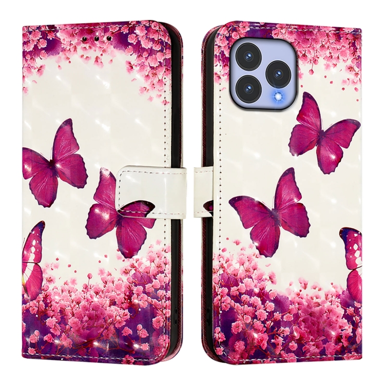 Funda de Cuero con Tapa Horizontal para Teléfono Wiko T60 con Pintura 3D (Mariposa Rosa)