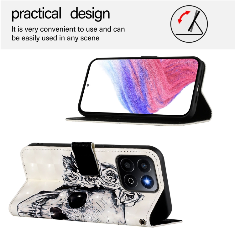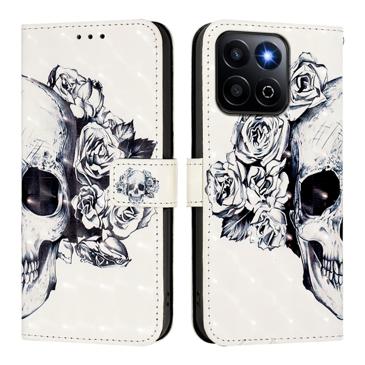Funda de Cuero con Tapa Horizontal y Pintura 3D para Honor 200 5G (Calavera)