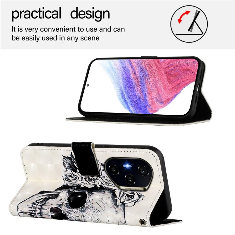 Funda de Cuero con Tapa Horizontal y Pintura 3D para Honor 300 Pro/300 Ultra (Calavera)