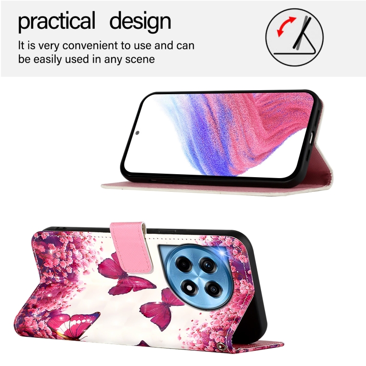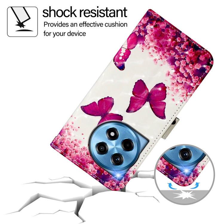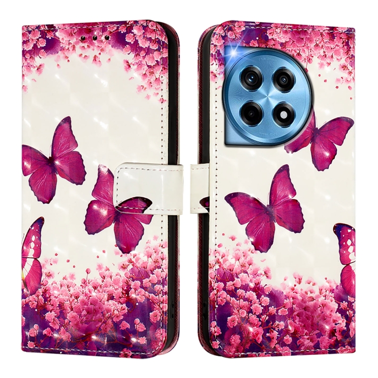 Funda de Cuero con Tapa Horizontal y Pintura 3D para OnePlus 12R 5G Global (Mariposa Rosa)