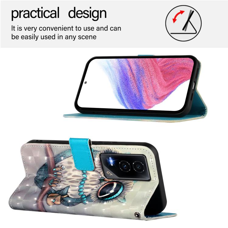 Funda de Cuero con Tapa Horizontal y Pintura 3D para Honor GT (Búho Gris)