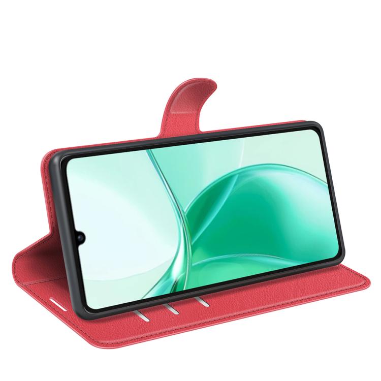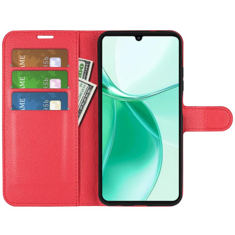 Funda de Cuero con Tapa Horizontal y Textura de Lichi para ZTE Blade A35 con Soporte (Rojo)