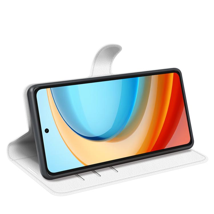 Funda de Cuero para ZTE Blade A75 5G con Tapa Horizontal y Textura de Lichi (Blanco)