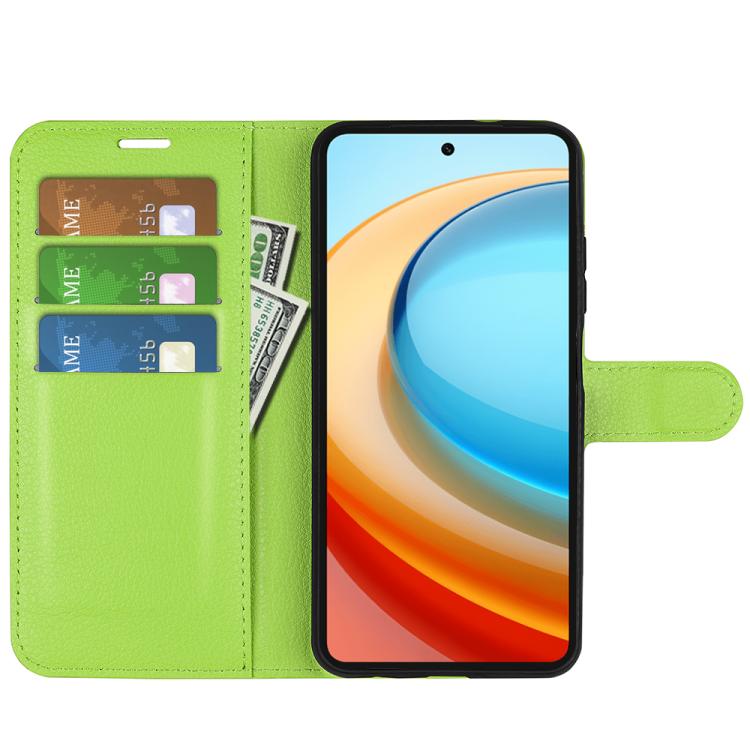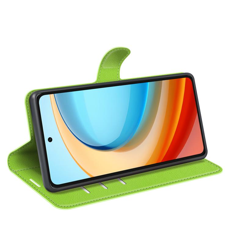 Funda de Cuero para ZTE Blade A75 5G con Tapa Horizontal, Textura de Lichi y Soporte (Verde)