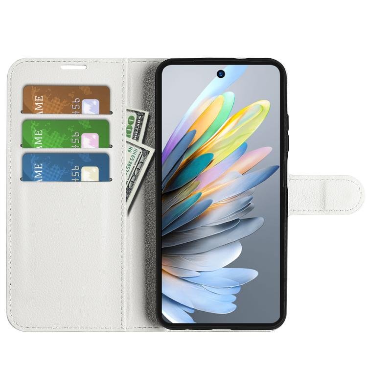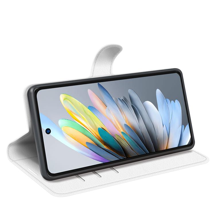 Funda de Cuero para ZTE Blade A75 con Tapa Horizontal, Textura de Lichi y Soporte (Blanco)