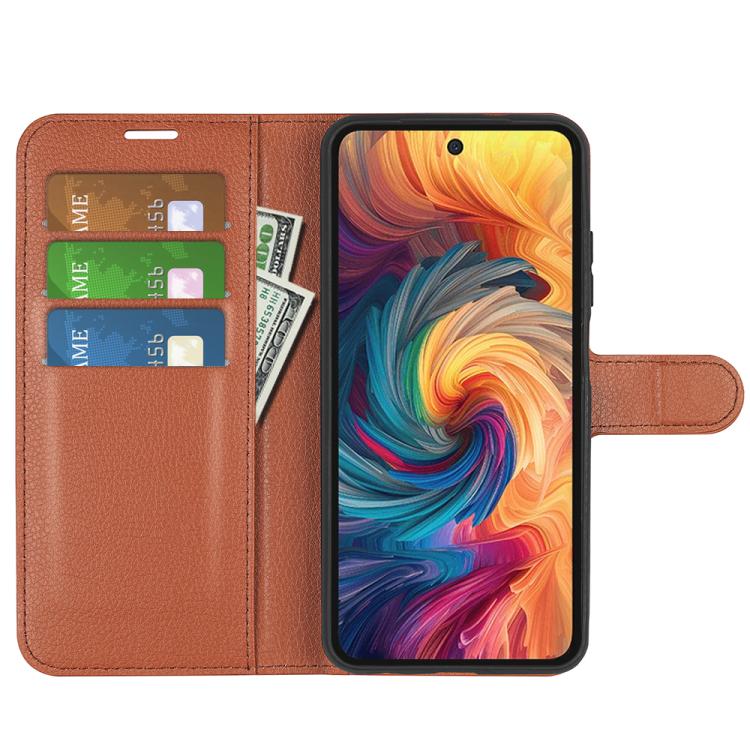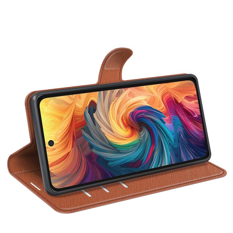 Funda de Cuero con Tapa Horizontal y Textura de Lichi para ZTE Blade V70 con Soporte (Marrón)