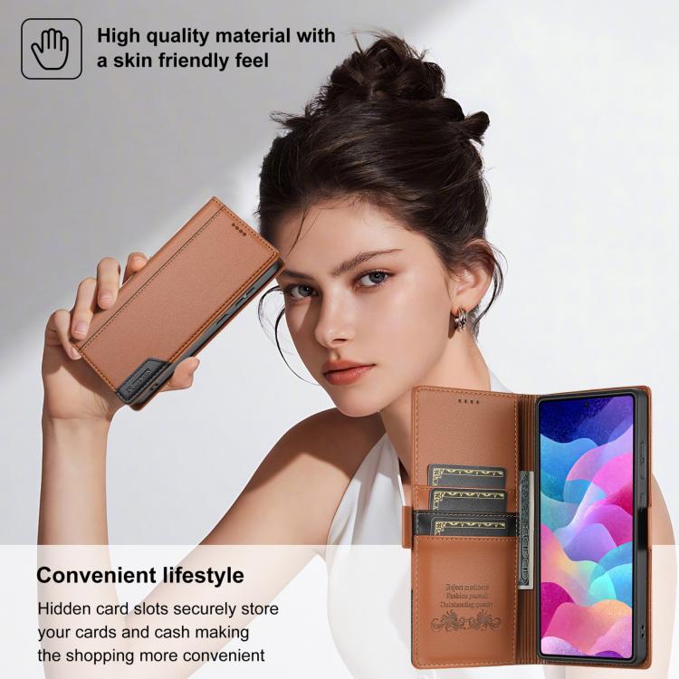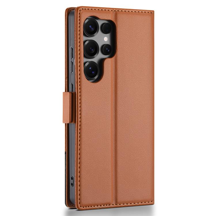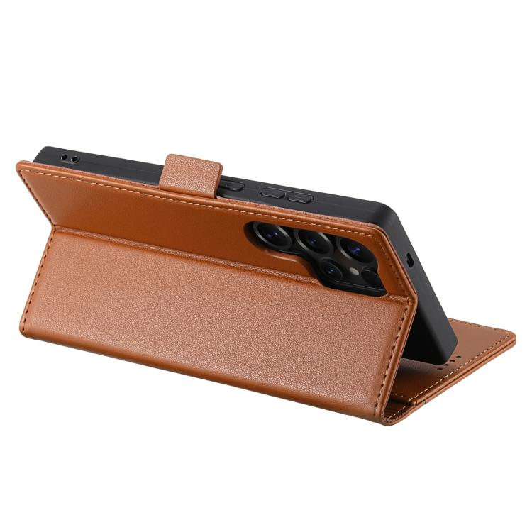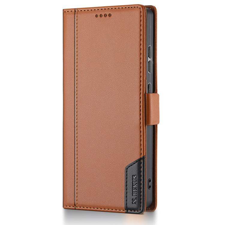 Funda de cuero con tapa magnética y costuras RFID para Samsung Galaxy S25 Ultra 5G N.BEKUS P3 (marrón)