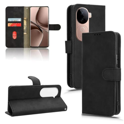 Funda de Cuero con Tapa Magnética y Tacto Agradable para El Tacto de la Piel para Vivo V40E 5G India/Iqoo Z9S 5G (Negra)