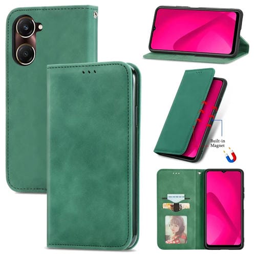 Funda de Cuero con Tapa Magnética y Tacto Retro para Vivo Y37 (Verde)