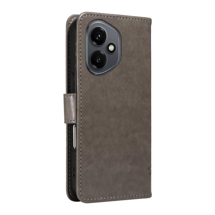Funda de cuero con tapa para Honor 400 Global (156,5 mm), diseño de árbol y gato en relieve (gris)