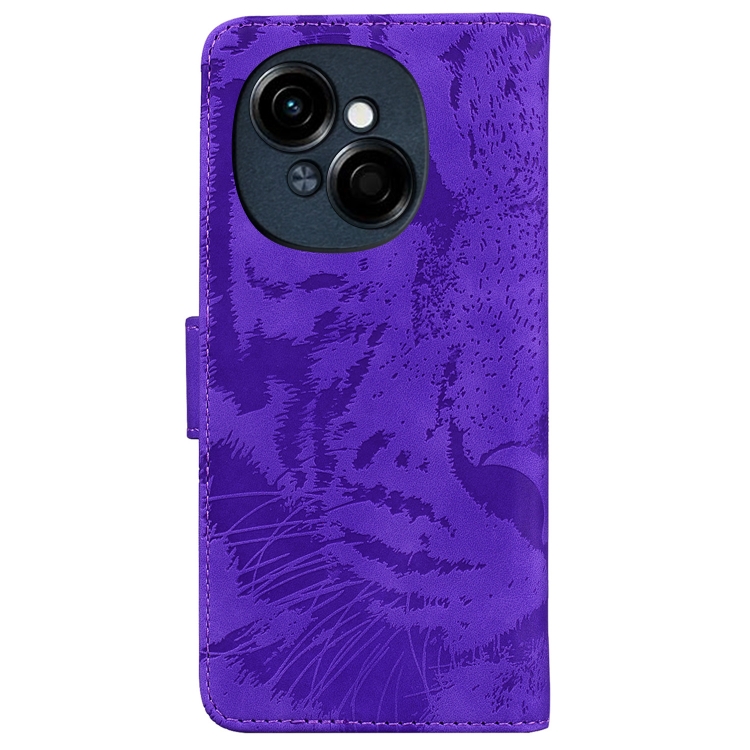Funda de Cuero con Tapa para Tecno Spark Go 1 Pop 9 Pro Estampado Tigre (Morado)