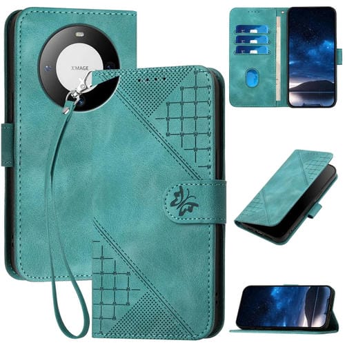 - 1x Funda de Cuero con Tapa y Cordón para Huawei Mate 60 Pro Yx0080 (Azul Claro) con Diseño en Relieve