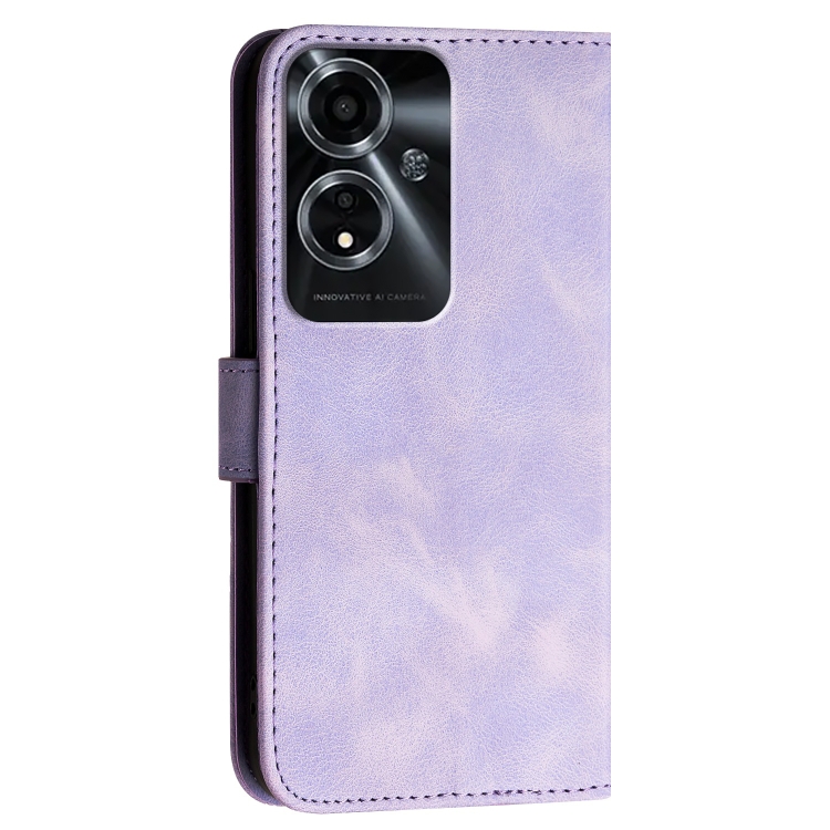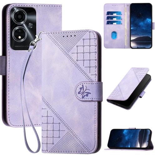 Funda de Cuero con Tapa y Cordón para Oppo A59 5G Yx0080 con Diseño En Relieve de Mariposa y Cuadrícula (Morado Claro)