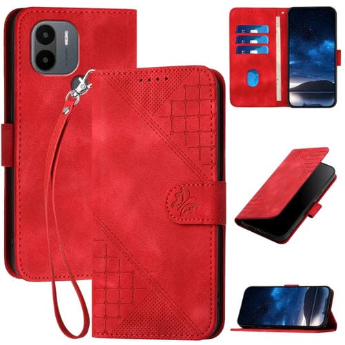 Funda de Cuero con Tapa y Cordón para Redmi A1+ Yx0080 con Diseño En Relieve de Mariposa y Cuadrícula (Rojo)