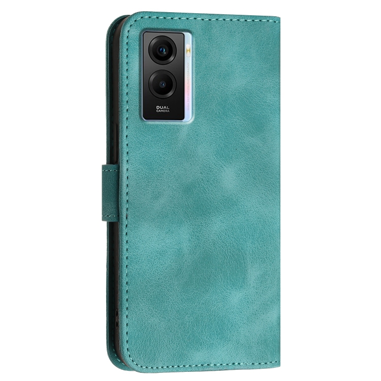 Funda de Cuero con Tapa y Cordón para Vivo Y55 5G Global Yx0080 con Diseño En Relieve de Mariposa y Cuadrícula (Azul Claro)