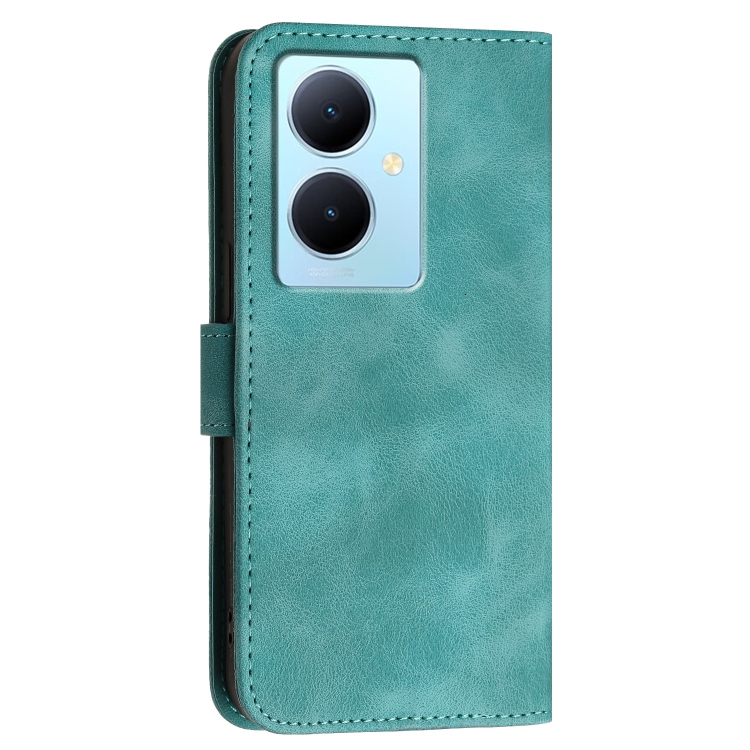 Funda de Cuero con Tapa y Cordón para Vivo Y78 5G Global Yx0080 con Diseño En Relieve de Mariposa y Cuadrícula (Azul Claro)