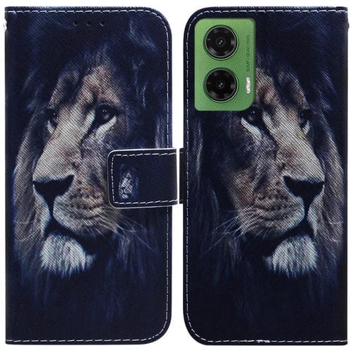 Funda de Cuero con Tapa y Dibujo a Color para Motorola Moto G35 (León)