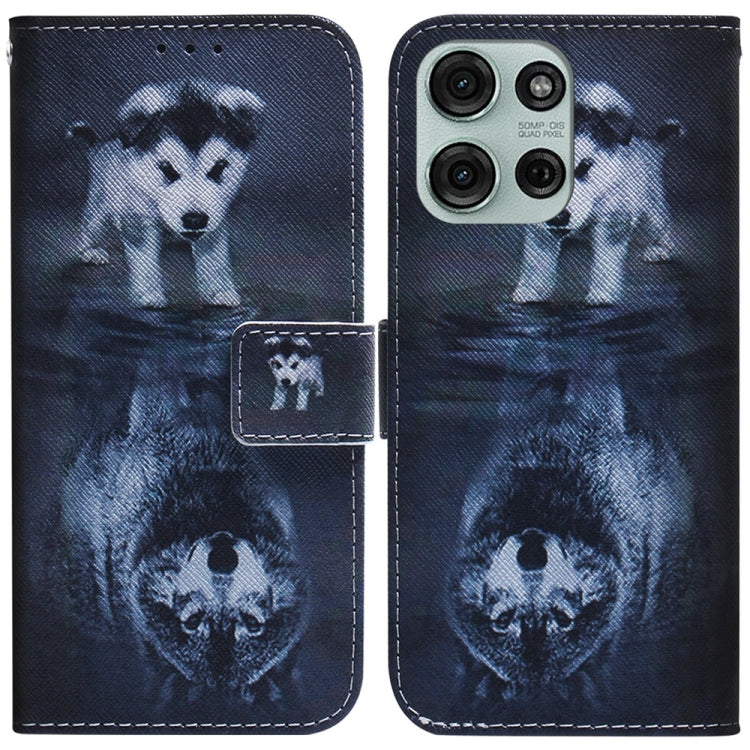 Funda de Cuero con Tapa para Motorola Moto G75 5G (Lobo y Perro)