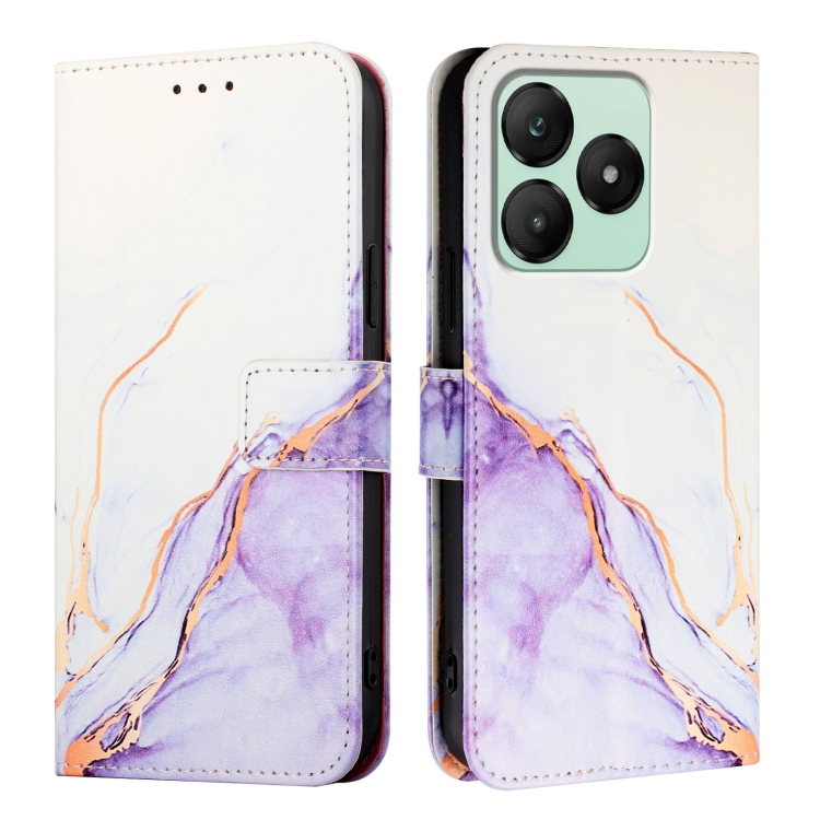 Funda de Cuero con Tapa para Teléfono Wiko T20 Pt003 Diseño Mármol (Blanco y Morado)