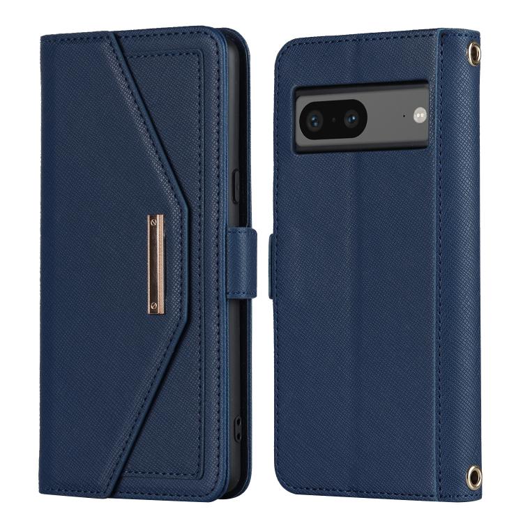Funda de Cuero con Textura Cruzada y Cordón para Google Pixel 6A (Azul)