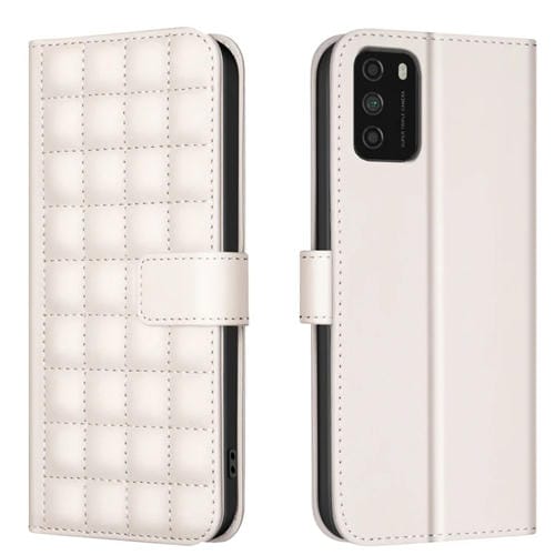 Funda de Cuero con Textura Cuadrada para Xiaomi Poco M3 Pro/Redmi Note 10 5G (Beige)