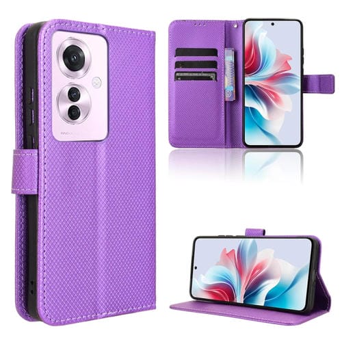 Funda de Cuero con Textura de Diamante para Oppo Reno11 Pjh110 (Morado)