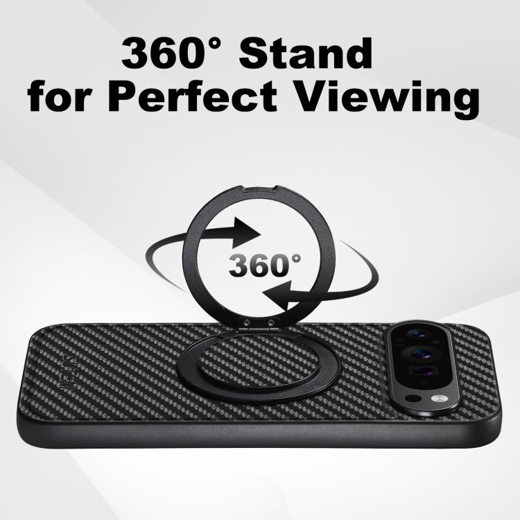 Funda de Cuero Suteni G3 con Textura Fibra de Carbono y Soporte Giratorio 360° para Google Pixel 8 Pro (Negro)