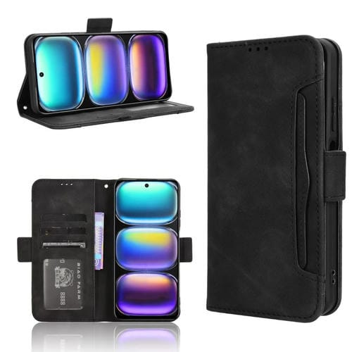Funda de Cuero con Textura de Piel de Becerro y Ranuras para Tarjetas para Infinix Hot 50 5G (Negro)