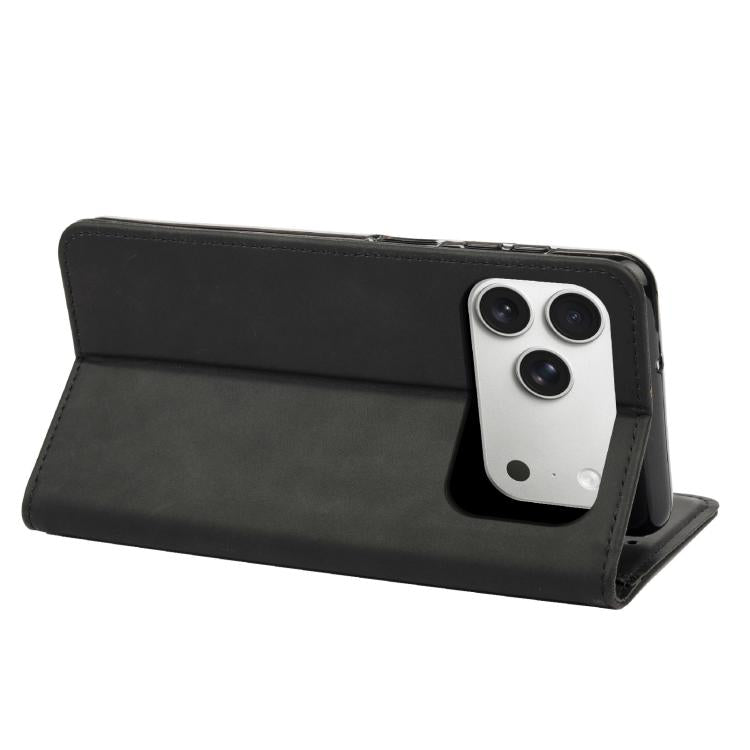 Funda de cuero con textura de piel para iPhone 17 Pro (negra)