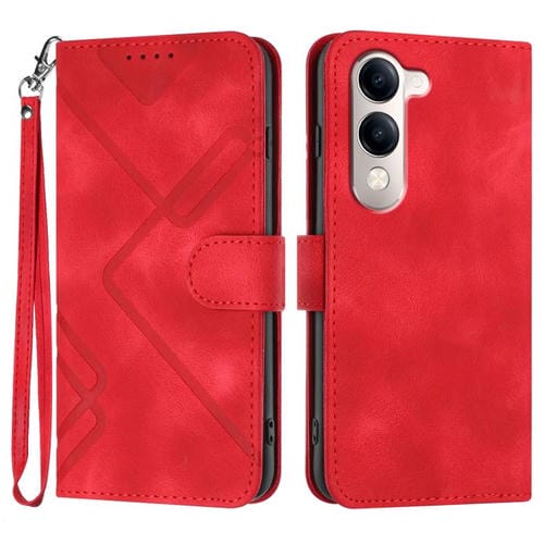 Funda de Cuero con Textura de Piel y Diseño de Líneas Globales para Vivo Y29S 5G / Y04 4G (Roja)