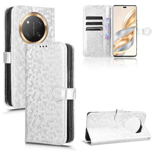 Funda de Cuero con Textura de Puntos de Panal para Honor X9C 5G y Magic7 Lite 5G (Plateada)