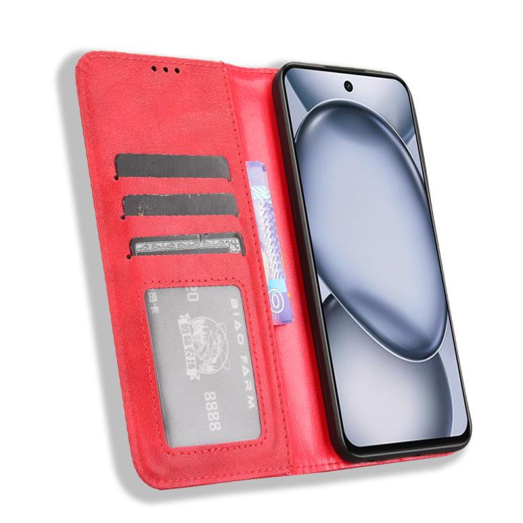 Funda de Cuero Itel A80 4G con Textura Retro y Hebilla Magnética (Rojo)