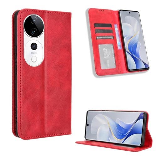 Funda de Cuero con Textura Retro y Hebilla Magnética para Vivo S19 Pro 5G/V40 5G (Rojo)
