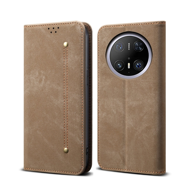 Funda de Cuero con Textura Vaquera para Huawei Mate 70 Pro 5G y 70 Pro+ 5G (Caqui)