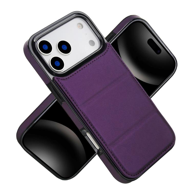 Funda de cuero con tres pliegues y ranura para tarjetas para iPhone 17 Pro Max (morado oscuro)