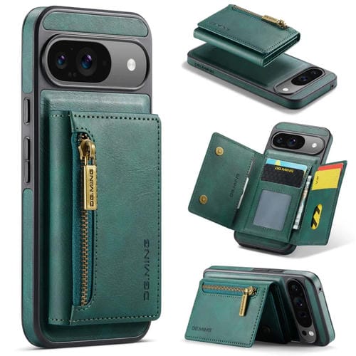 Funda de Cuero Desmontable Dg.Ming M5 Series para Google Pixel 9/9 Pro con Tarjetas y Cremallera Rfid (Verde)