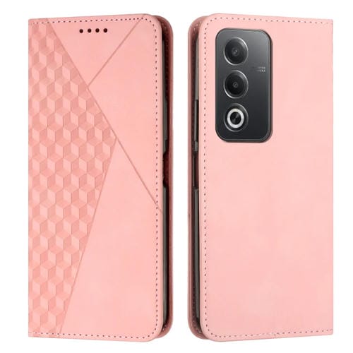 Funda de Cuero Magnética con Diseño de Empalme de Diamantes para Oppo A3 Pro (Oro Rosa)