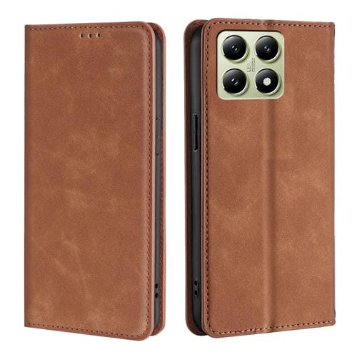 Funda De Cuero Magnética Con Tacto De Piel Para Teléfono Xiaomi 14T 5G (Marrón Claro)