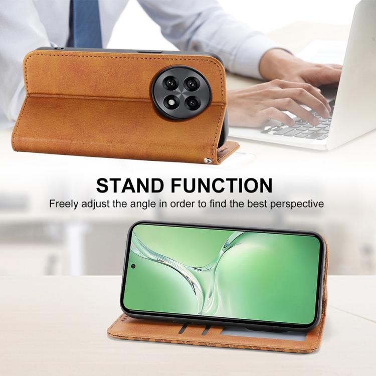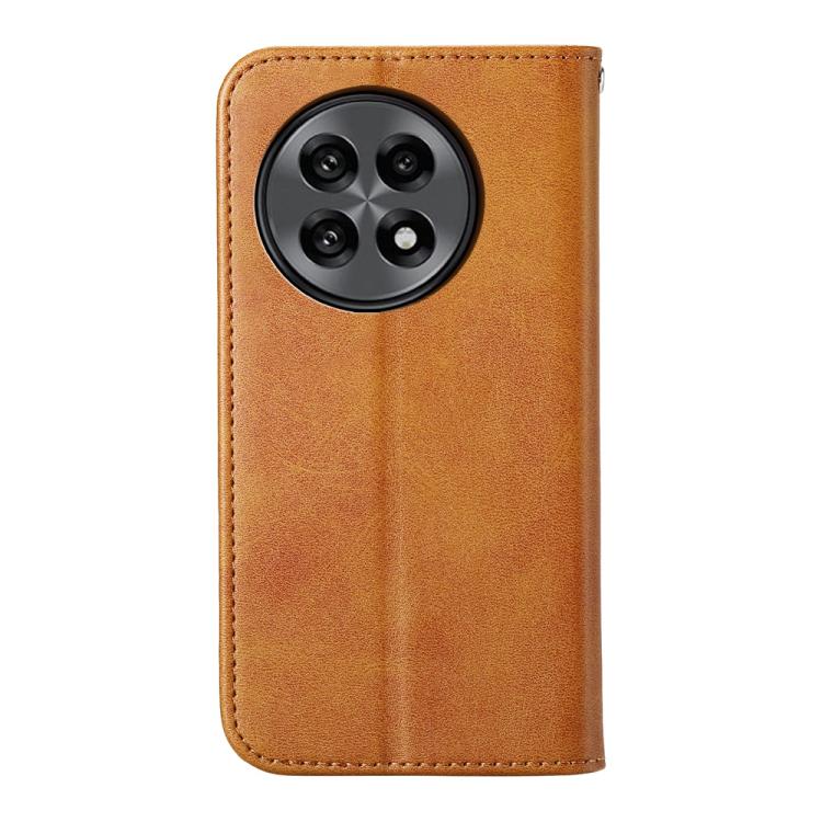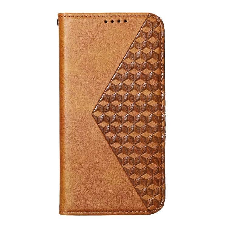 Funda de Cuero Magnética Textura Becerro Cuadrícula Cúbica para OnePlus 13R/Ace 5/Ace 5 Pro (Amarillo)
