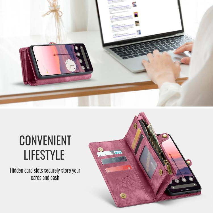 Funda de Cuero Multifuncional Desmontable Caseme 008 para Google Pixel 9A (Rojo Vino)