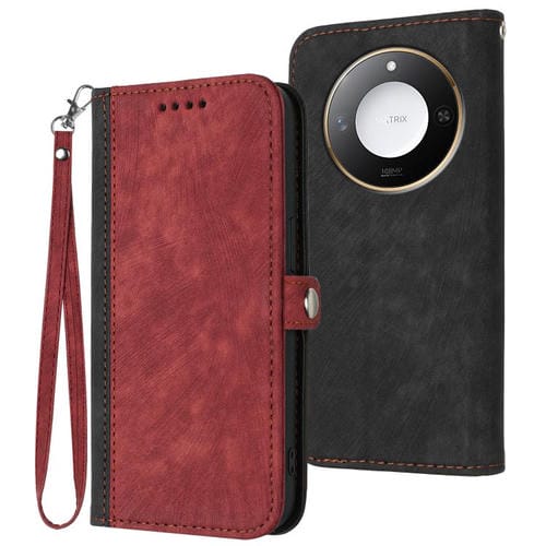 Funda de Cuero para Honor X60/X9C con Correa de Mano Plegable y Hebilla Lateral (Rojo)