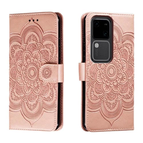 Funda de Cuero para Teléfono con Estampado de Mandala y Sol para Vivo S18 (Oro Rosa)