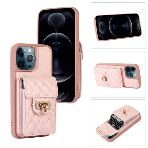 Funda de Cuero para Teléfono iPhone 12 Pro Max Ranura para Tarjeta (Rosa)