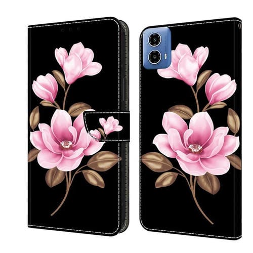 Funda de Cuero Pintada a Mano para Motorola Moto G34 (Flores Negras)