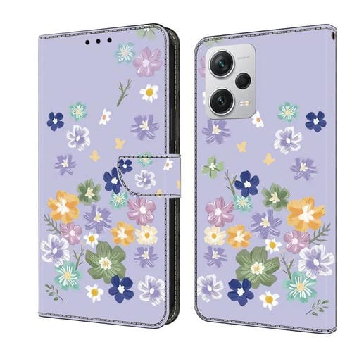 Funda de Cuero Pintada a Mano para Redmi Note 12 Pro+ (Floral Morado)