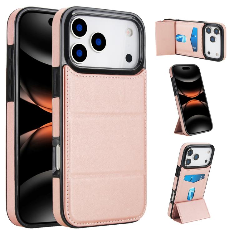 Funda de cuero plegable triple con ranura para tarjetas para iPhone 17 Pro Max (oro rosa)
