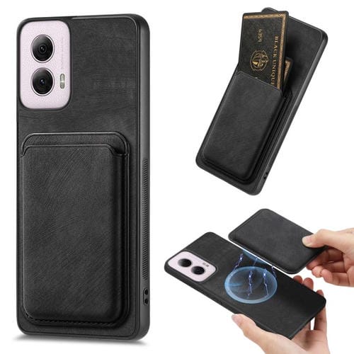 Funda de Cuero Retro con Tarjetero y Cierre Magnético para Motorola Moto G Power 5G (2024) (Negro)