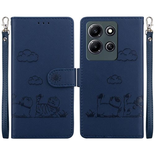 Funda de Cuero RFID para Infinix Note 30I con Diseño de Gatos (Azul)