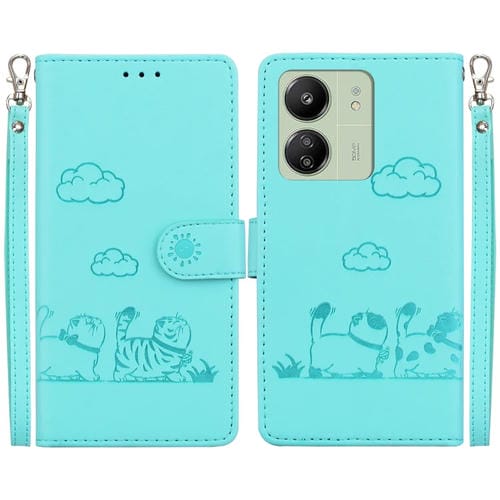 Funda de Cuero Rfid con Diseño de Gatos para Redmi 13C 4G/5G (Verde)