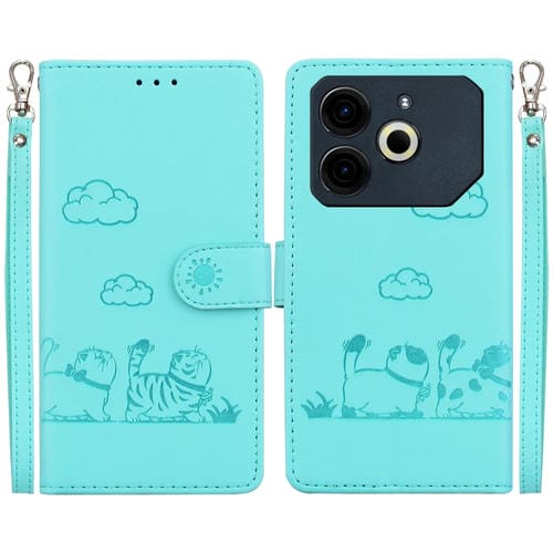 Funda de Cuero Rfid para Tecno Pova 6 Neo con Diseño de Gatos (Verde)